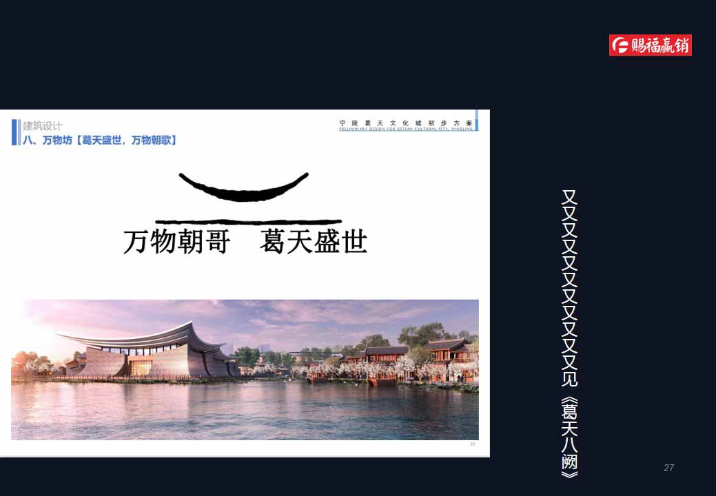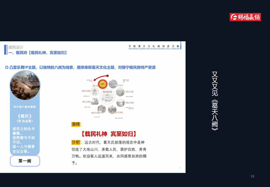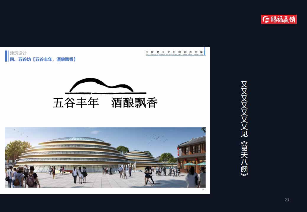 項(xiàng)目是以葛天文化為主題的綜合人文新城,由護(hù)城河環(huán)路圍合而成,一期占地面積1.2平方公里,建筑面積70余萬平方米,投資規(guī)模50多億元。項(xiàng)目在規(guī)劃設(shè)計(jì)過程中,堅(jiān)持以世界眼光、國際視角、本地特色為宗旨,對標(biāo)國內(nèi)外經(jīng)典案例,充分深度挖掘?qū)幜旮饑?、葛氏、葛天樂舞等文化要素,旨在將葛天文化城塑造成為有生活、有文化、有鮮明地方特色的“活”的城區(qū),承載和弘揚(yáng)寧陵地方文化新的高地。